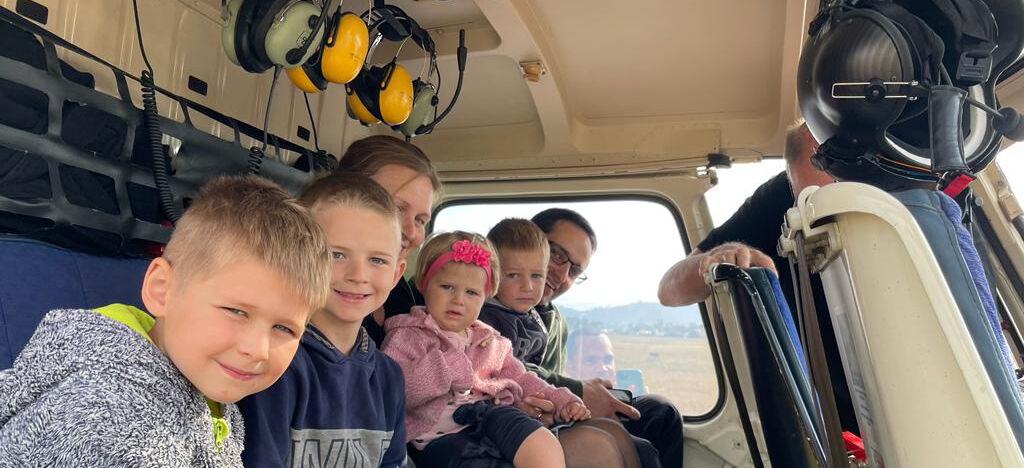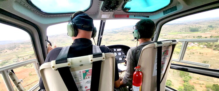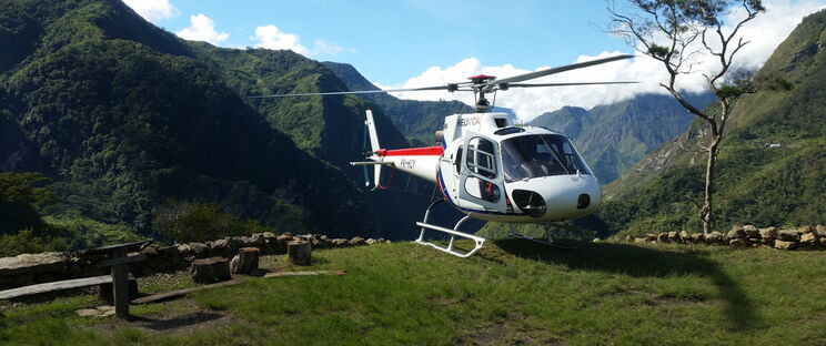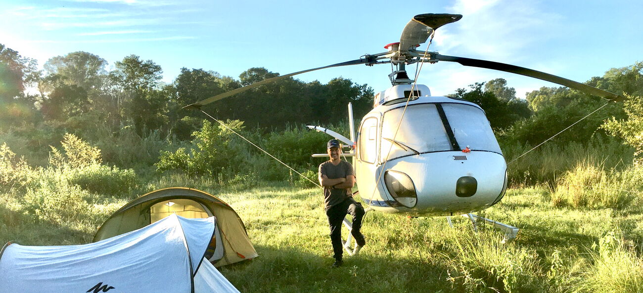 Hubschrauber statt Fahrrad und Boot.