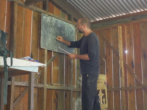 Als wir im Dezember 2024 bei den Nankina waren, haben wir einige Bildergeschichten gesammelt zur Vorbereitung für den ersten Lese-Schreib-Unterricht; die Bildergeschichten hatte ich (Benjamin) in der Zwischenzeit zu einem Heft zusammengestellt. Im Mai flog ich für zehn Tage zu den Nankina.