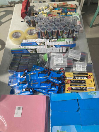 „O ja, sehr gerne“, meinte sie und berichtete dann ein wenig entmutigt, dass sie nur eine Schere haben, die sich alle Kinder teilen müssen, und dass sie den einen Kleber aufteilen müssen, damit er für alle reicht.