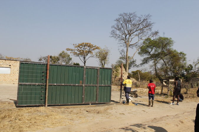 - Das erste Schiebetor bei der Einfahrt ist angebracht.