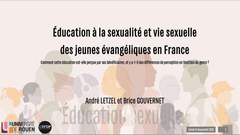 Eine kürzlich durchgeführte Studie (Letzel & Gouvernet) unter evangelikalen Jugendlichen in Frankreich befasste sich mit Sexualerziehung und Sexualität. Mehr als 2800 Teilnehmer im Alter von 18 bis 30 Jahren aus evangelikalen Gemeinden nahmen teil.